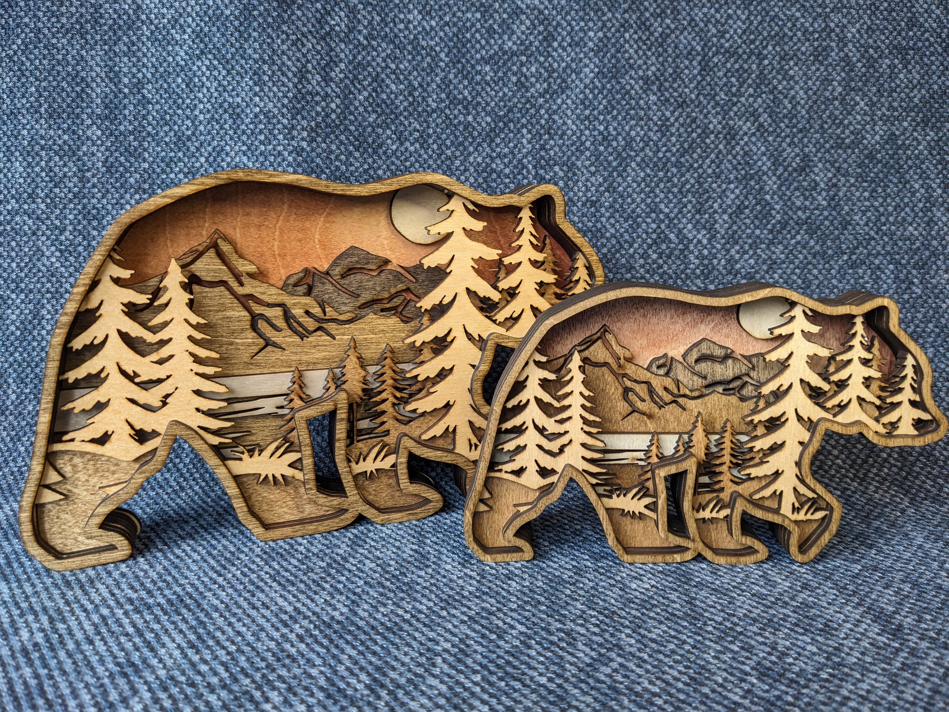 This 7-layer bear is crafted from stained wood and features a mountain background, making it a perfect addition to any shelf. Embrace your inner adventurer with this playful and quirky addition to your home decor.