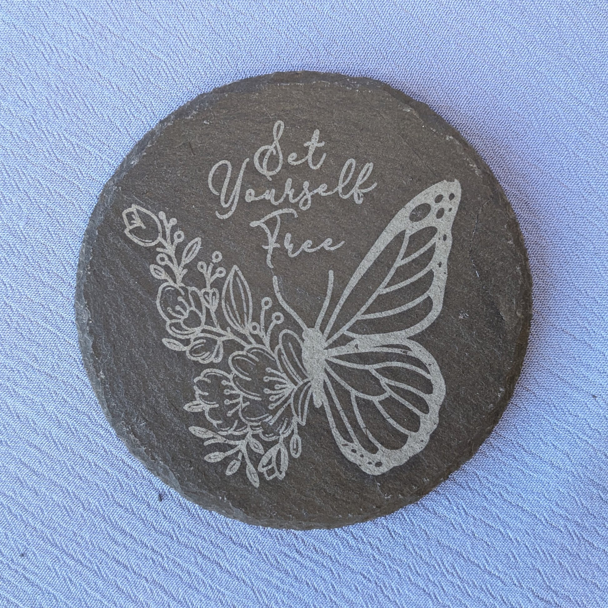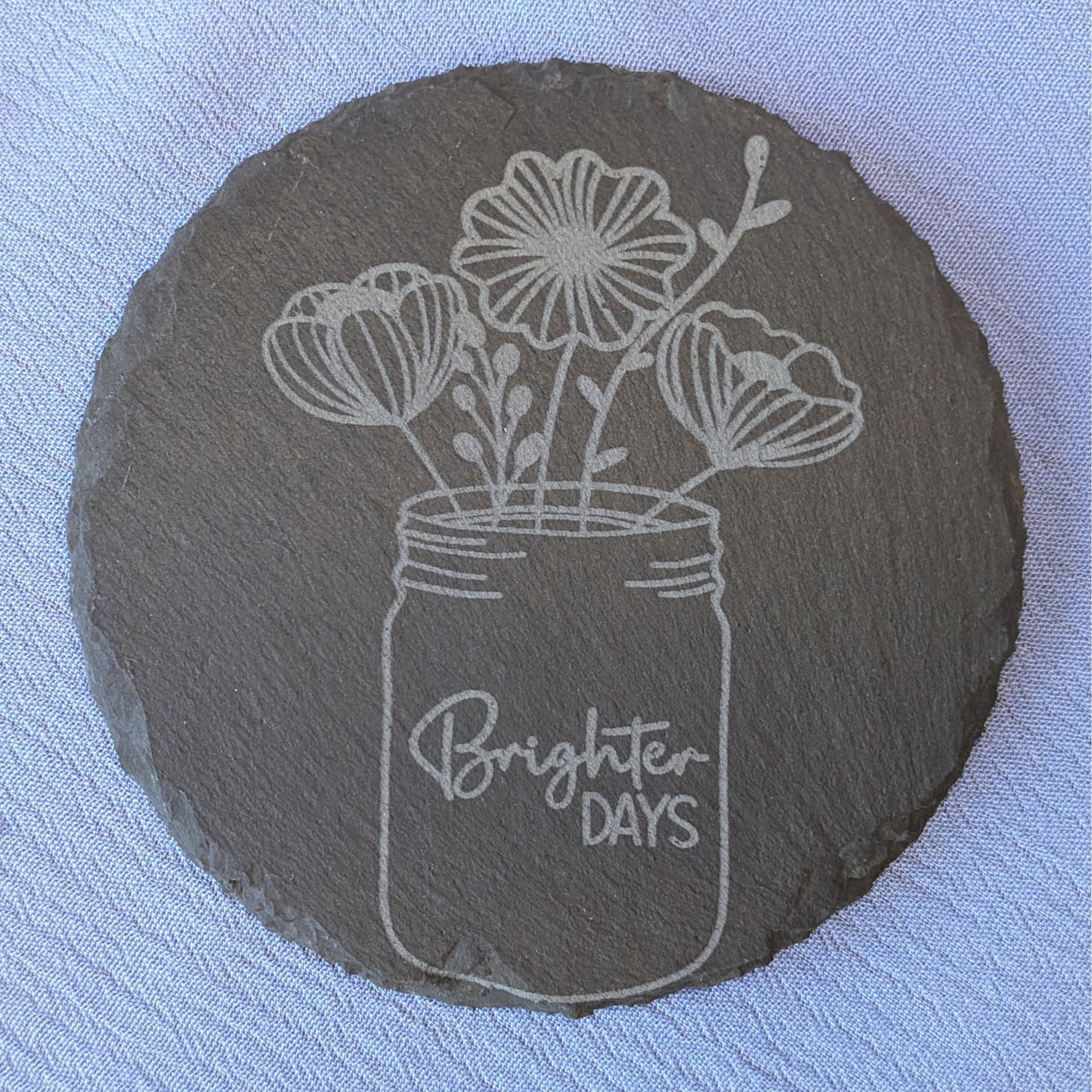 Add a touch of nature and positivity to your home with our Wildflower Coasters! Each coaster features a unique design and positive message to brighten up your day. Made from durable slate, they're perfect for protecting your surfaces with a touch of whimsy.