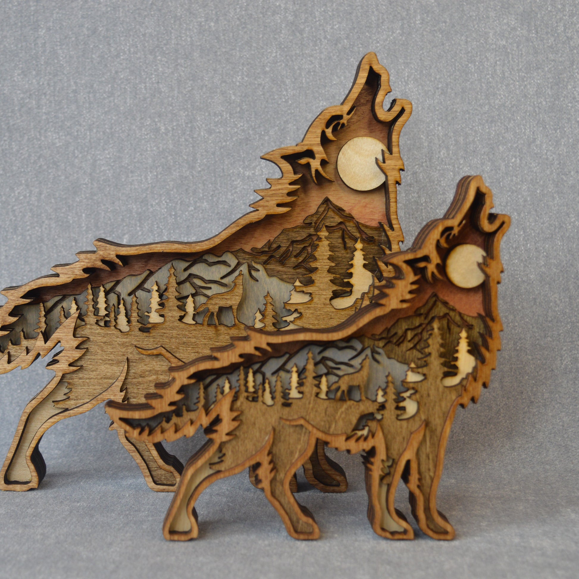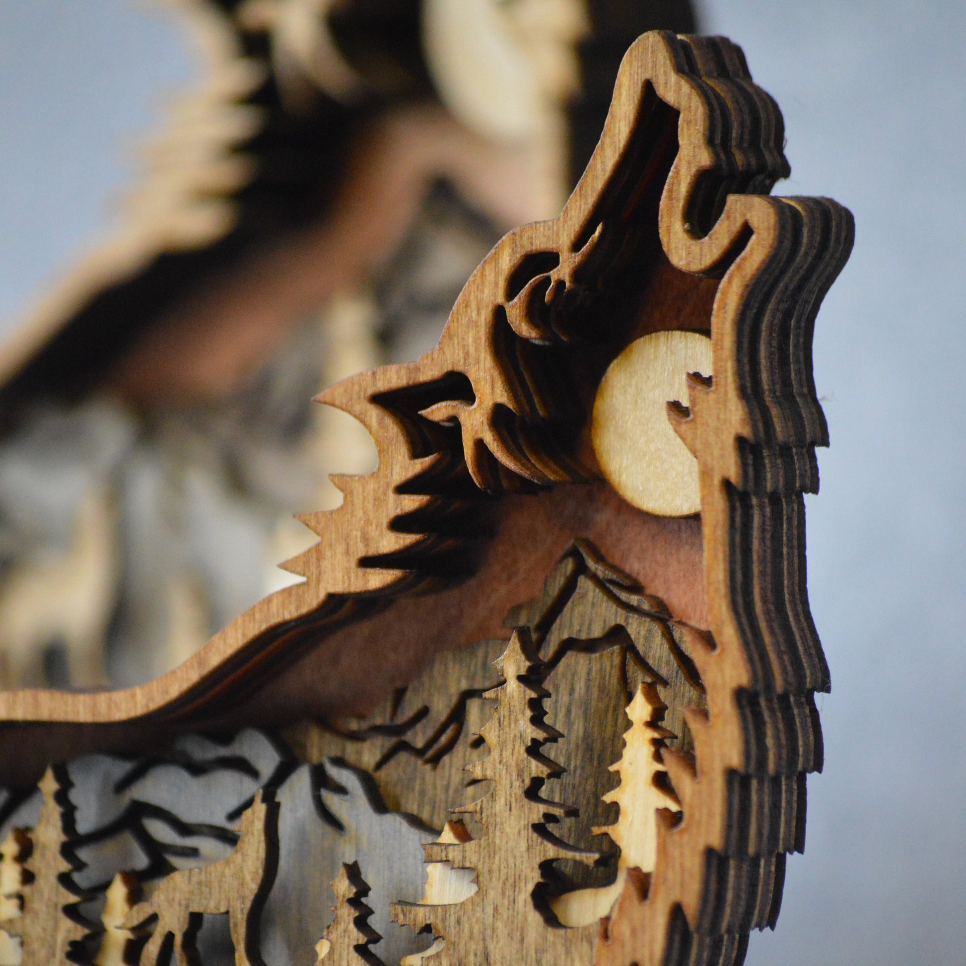 Experience the wild side with Wolf, a layered wooden piece that embodies the spirit of a wolf within a wolf. Perfect for any shelf, this piece will howl its way into your heart.